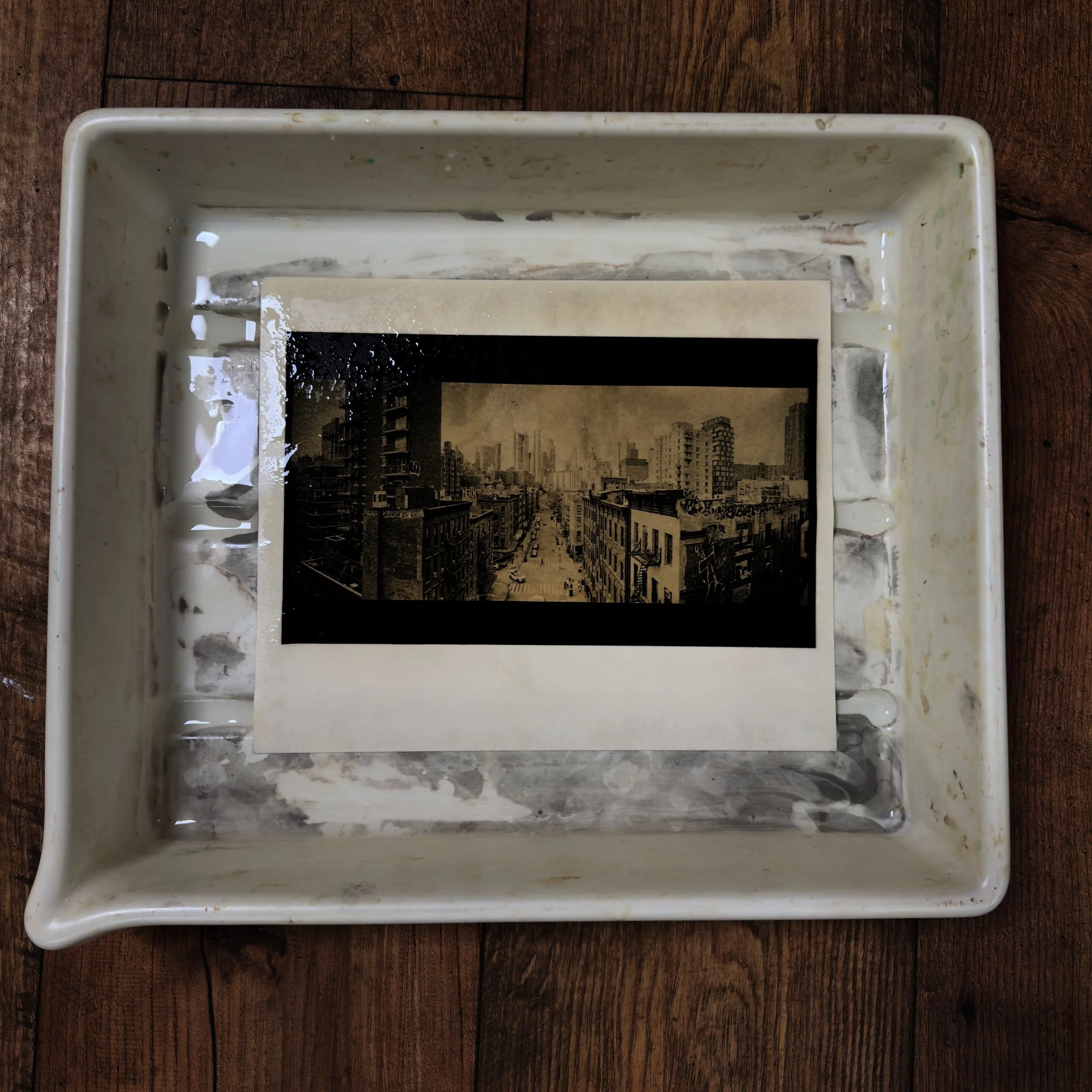 This print was made from a panoramic negative (see image above), on Kodak Medalist paper dated from the late 1970 early 80s. I pulled it from the developer at that slightly nervous point where it felt as though one more moment might ruin it, and that tension seems to be part of the process. Lith printing isn’t really about precision. It’s about judgment, timing and accepting that the chemistry will have its say.